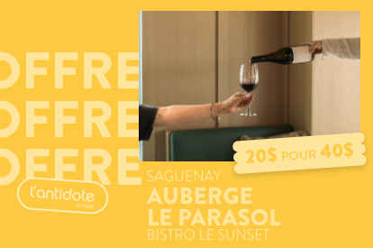 Accédez à la Boîte à Bleuets via les Terrases des Cascades, au 525, rue Sacré-Coeur Ouest, Alma. Un stationnement gratuit et sans limite de temps est disponible dans le stationnement à étage, au-dessous de la Boîte.
